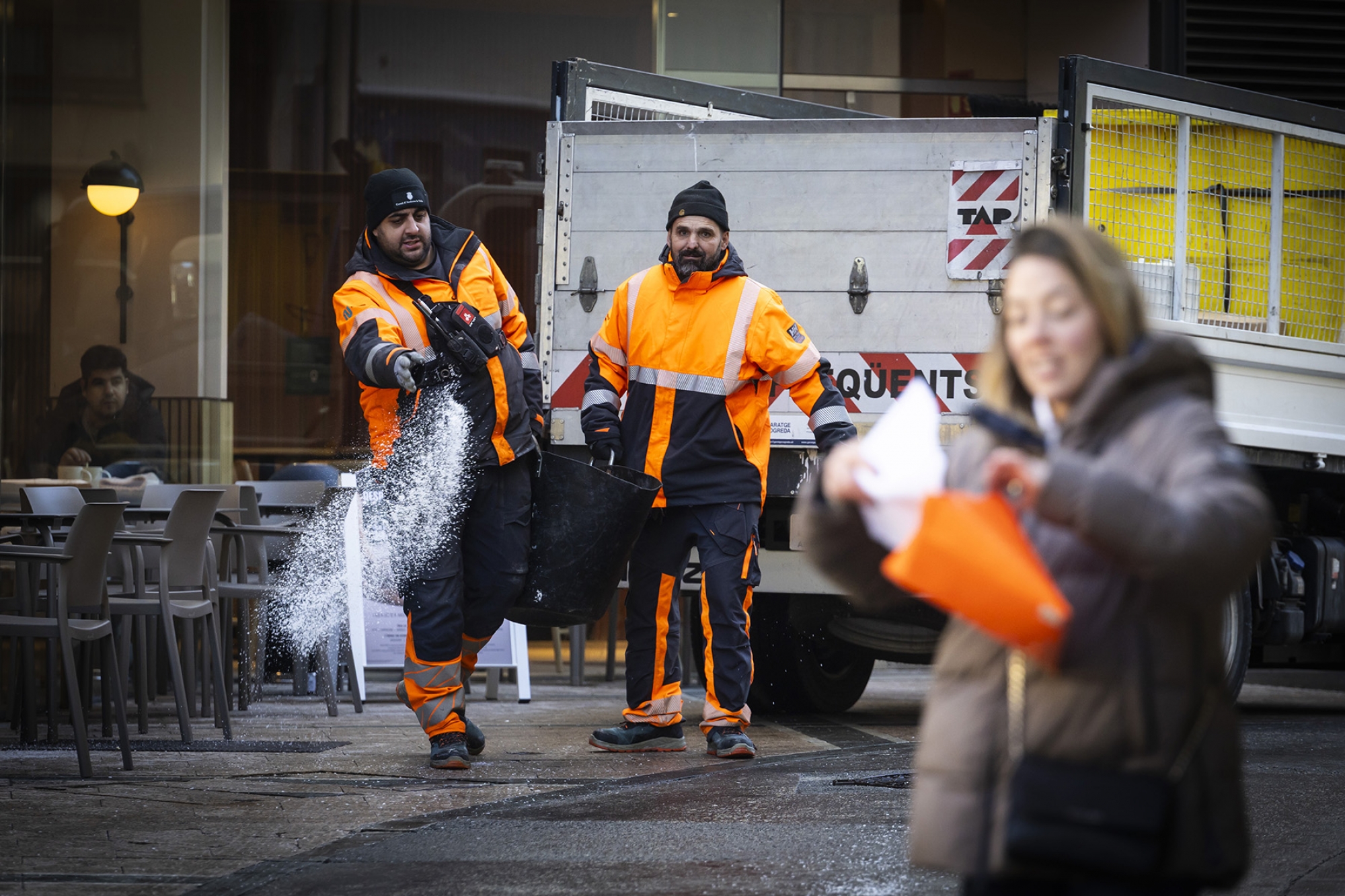 La cònsol menor d'Andorra la Vella, Olalla Losada, ha informat que el comú porta des de les quatre del matí "amb tot el servei d'operaris d'higiene fent tota la ronda", és a dir, tirant sal per les voravies per a evitar més relliscades dels vianants. L'objectiu, tal com ha explicat la cònsol, és que el carrer "estigués el més menys gelat possible a primera hora del matí a les 7 que és quan la gent comença a anar a treballar". Segons Losada, ja "s'ha fet una primera passada", però "anirem fent rondes durant el matí".