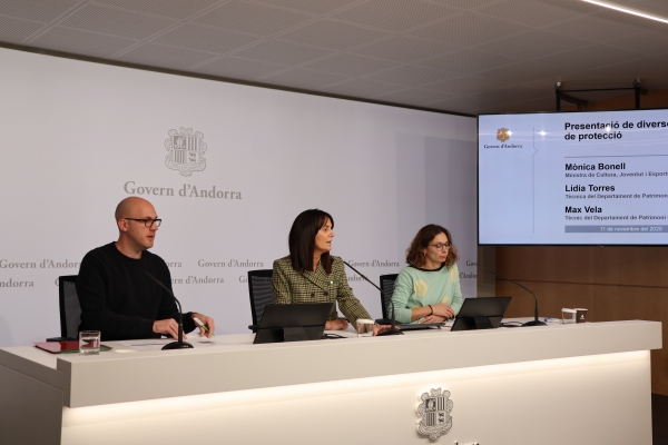 El Govern ha presentat aquest dimarts dos nous entorns de protecció del patrimoni de les esglésies de Sant Joan de Caselles i de Sant Miquel d'Engolasters. Aquests són els dos darrers dins el procés d’aprovació dels entorns de protecció dels monuments nacionals, previst per la Llei del Patrimoni Cultural del 2003 i vinculat a la candidatura transnacional dels testimonis de la creació de l’Estat dels Pirineus que Andorra presentarà el gener de 2026 davant la Unesco, així ho ha avançat la ministra de Cultura, Joventut i Esports, Mònica Bonell. Amb aquests dos, ja són 19 els monuments amb entorn de protecció delimitada. Només falten Sant Romà de les Bons, Sant Climent de Pal i Sant Martí de la Cortinada, el qual es troba en redacció i previst abans del gener.