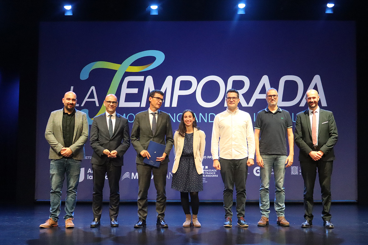 El director de màrqueting i comunicació de MoraBanc, Wiro Martin, la cònsol menor d’Andorra la Vella, Olalla Losada, i el codirector de la Temporada MoraBanc Andorra la Vella, Jordi Sabata, entre altres impulsors de la 31a Temporada.