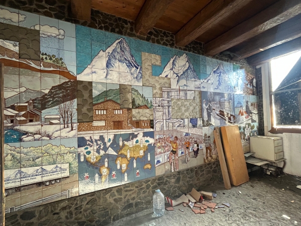 A instàncies de la cònsol major de la Massana, bombers i policia han portat a terme aquest dimarts al matí tasques de comprovació de l’estat del mosaic ceràmic que l’artista Sergi Mas va crear per encàrrec de la fàbrica d’aigua d’Arinsal. “Estem molt contents que el mural continuï com estava, amb algunes peces malmeses però ja ho estaven abans de l’incendi”, explica la cònsol major, Eva Sansa. “Avui és un dia trist ja que lamentem profundament la mort de Sergi Mas. Quan hem rebut la noticia de la seva defunció estàvem a Arinsal i la veritat és que ens ha confortat veure que el seu mural estava en bon estat”.