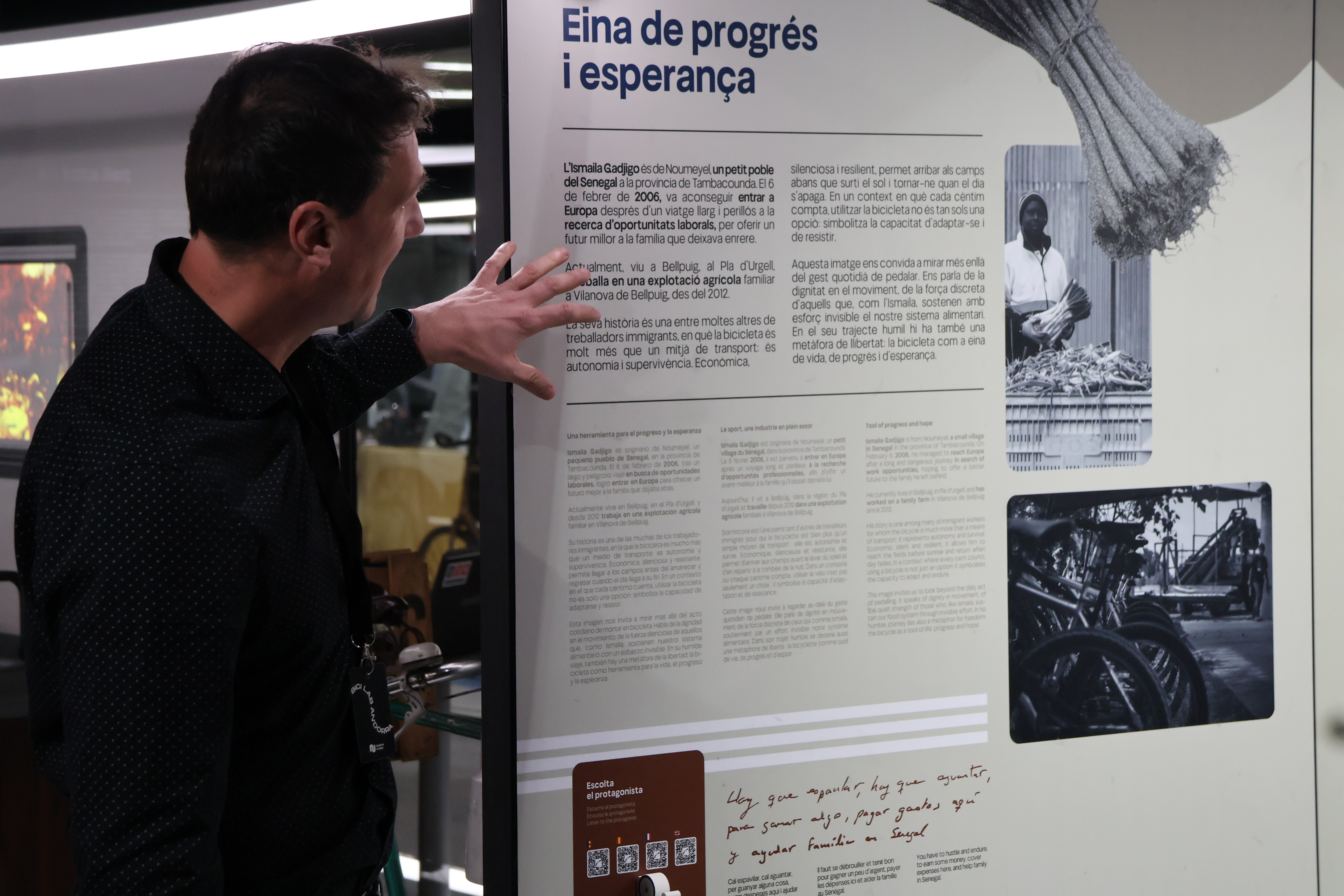 El cap d’Àrea del Bici Lab Andorra, Edu Tarrés, ha destacat que es tracta d'una exposició per tal d'intentar mostrar que les realitats de la bici al treball "és tan complexa com persones hi ha al món".