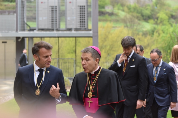 Santa Coloma.- El president de la República Francesa i copríncep d’Andorra, Emmanuel Macron, ha visitat aquest dimarts a l’Escola Andorrana de Santa Coloma en un acte marcat per la proximitat amb els més petits. El mandatari ha estat rebut per uns 200 alumnes de maternal, que li han donat la benvinguda amb la interpretació de l’himne 'El gran Carlemany'. Després de la cantada, Macron ha saludat els infants i el personal del centre, mostrant-se proper i distès. La visita ha continuat amb una sessió de fotografies, en què els alumnes han pogut immortalitzar el moment amb el copríncep francès. El president ha estat acompanyat per diverses autoritats andorranes, entre les quals el cap de Govern, Xavier Espot; el síndic general, Carles Ensenyat; i el ministre de Relacions Institucionals, Educació i Universitats, Ladislau Baró, així com altres representants institucionals.