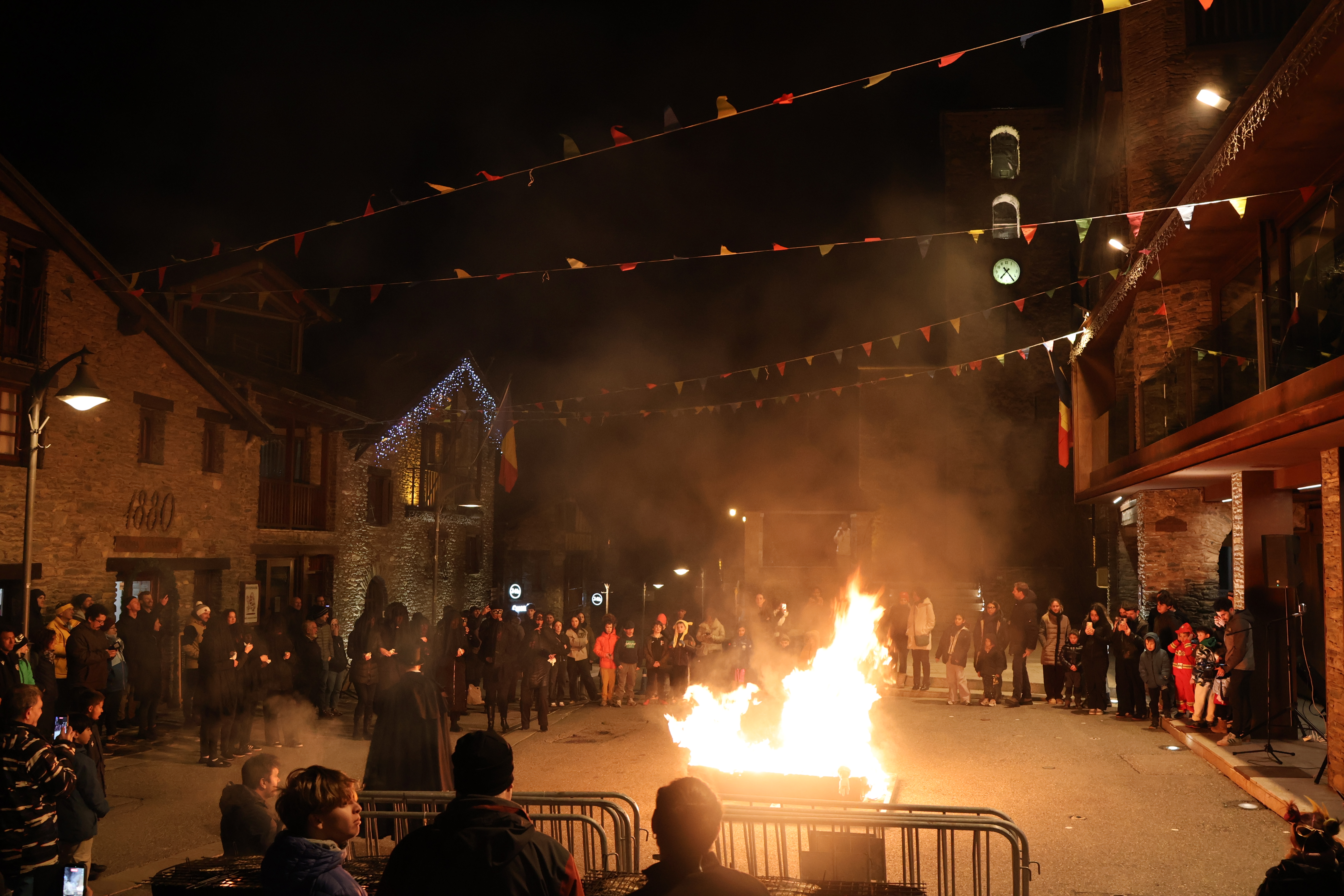 La crema del Carnestoltes a la plaça Major d'Ordino.