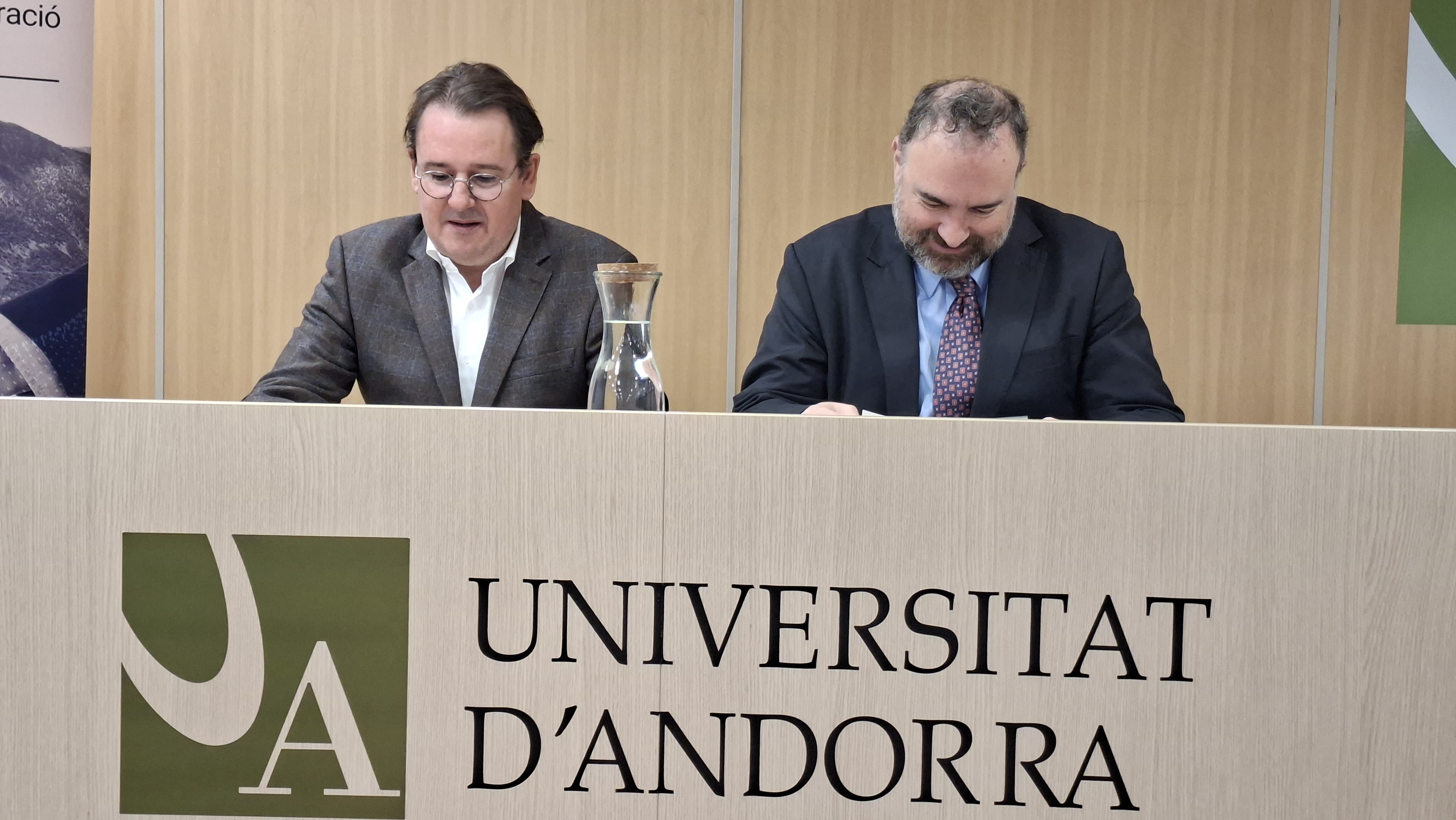 El president de l'EFA, Daniel Aristot, i el rector de la Universitat d'Andorra, Juli Minoves, durant la inauguració del programa.