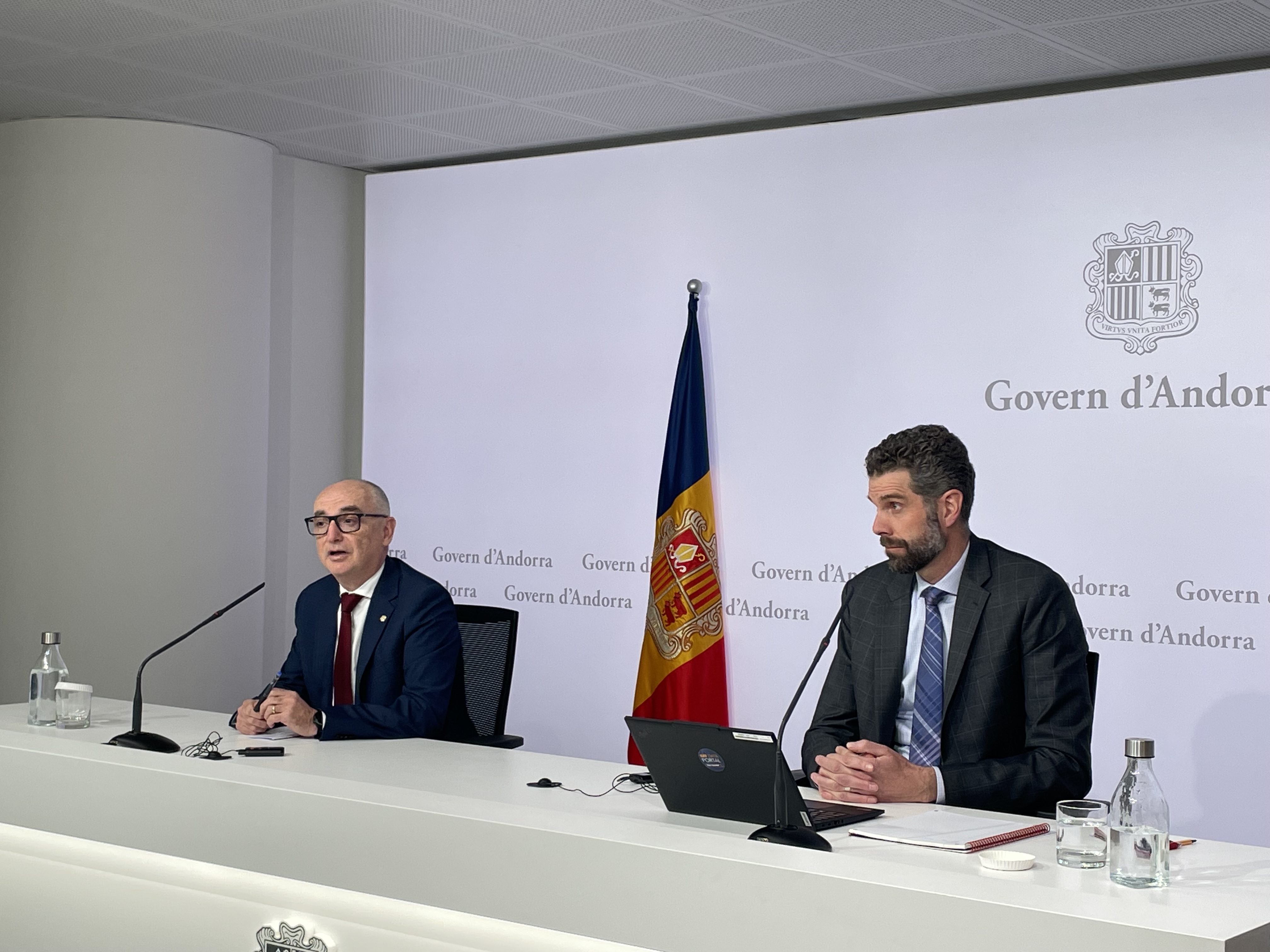 El cap de missió del Fons Monetari Internacional, Jeff Danforth, i el ministre de finances, Ramon Lladós.