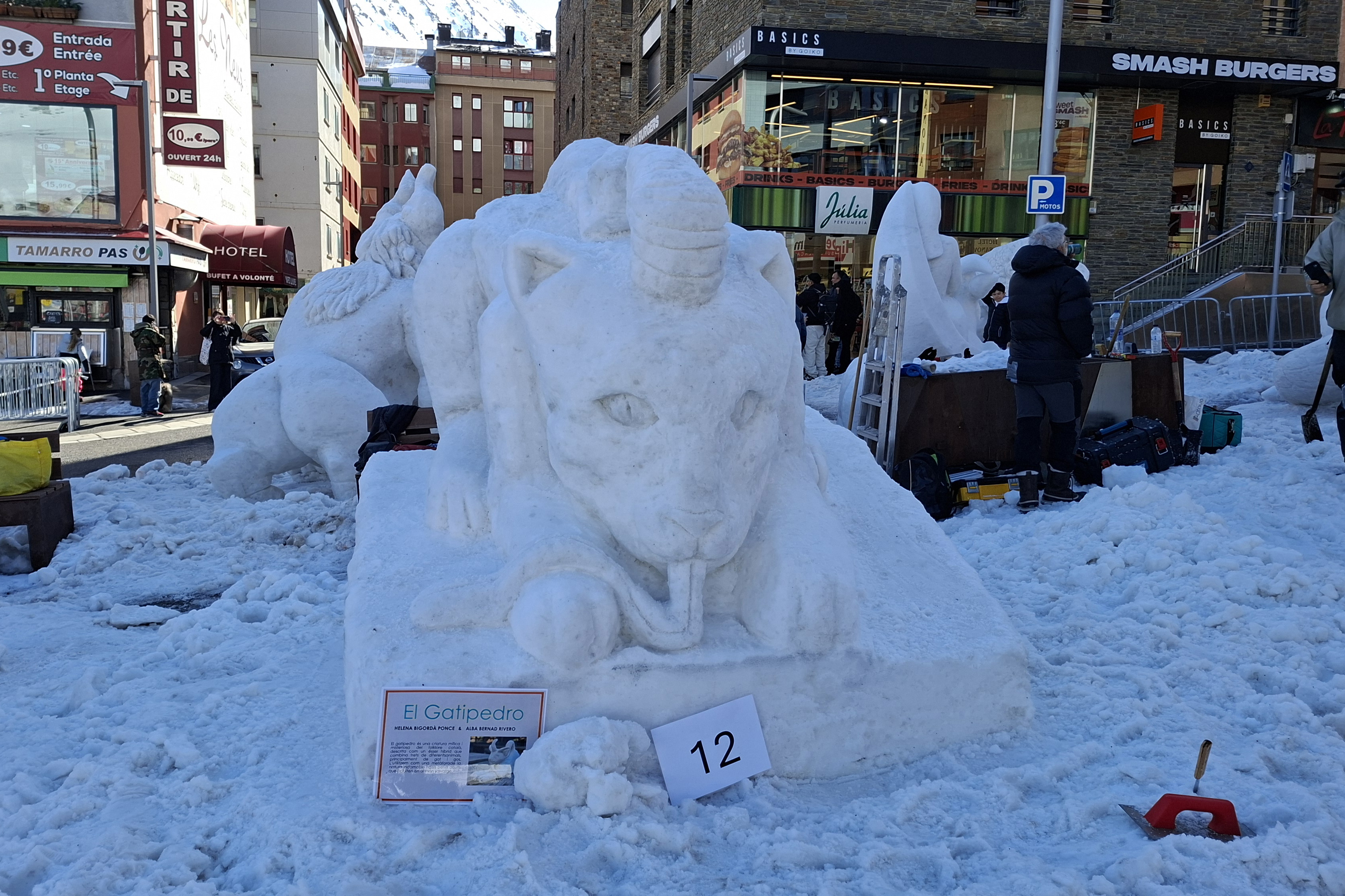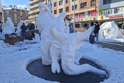 Els artistes Arnau Orobitg i Mandarine Stillwagoon han estat els guanyadors del concurs d'escultures de neu del Pas de la Casa amb la seva obra 'Therion'. Els dos virtuosos han esculpit la figura ibèrica Esfinx de Balazote, format per un cos de toro alat i el cap d'una persona humana. El segon premi se l'ha endut l'obra 'Simiot' i el tercer ha estat per 'Culebra'.