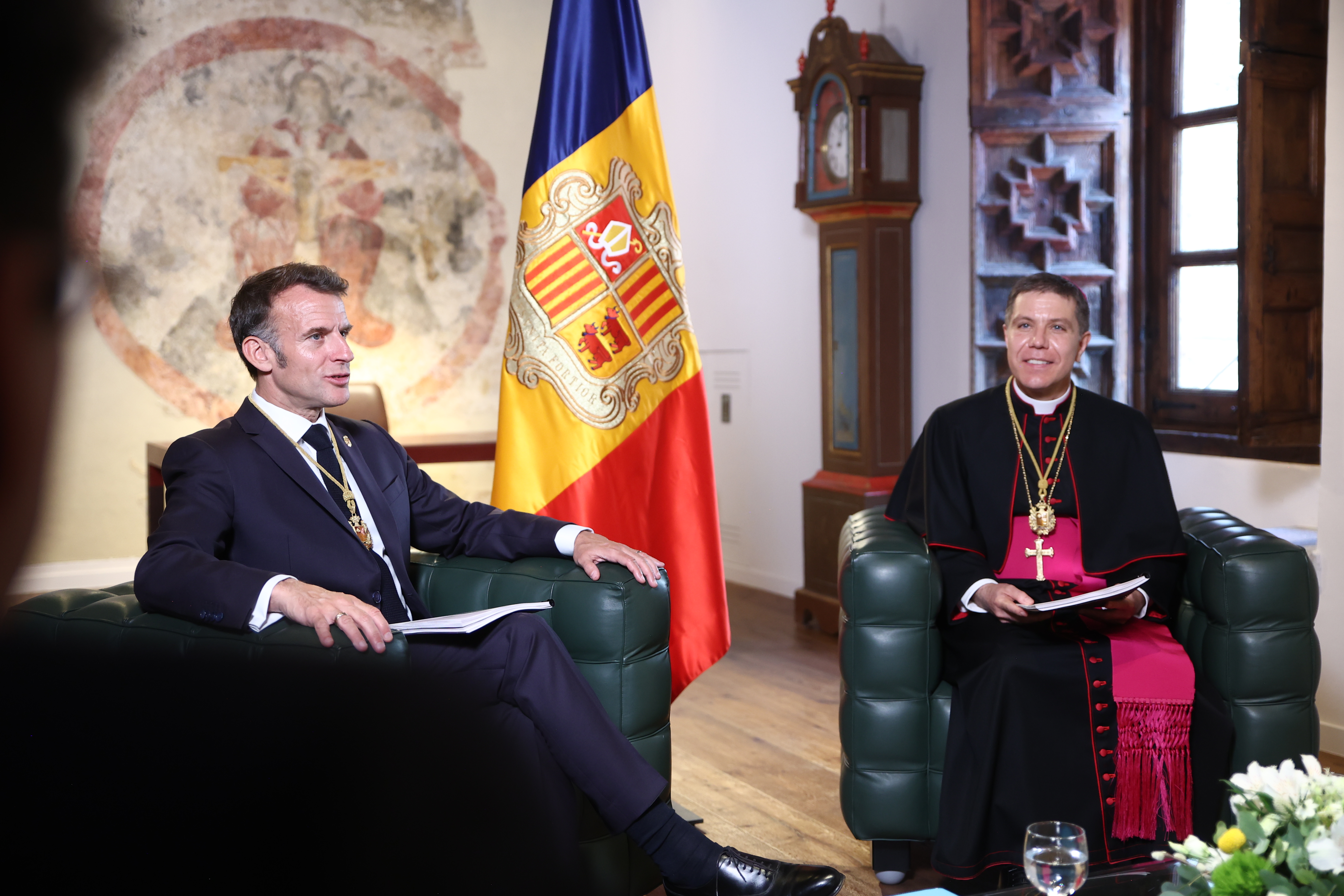 Els coprínceps, Emmanuel Macron i Josep Lluís Serrano i Pentinat, a la Casa de la Vall.
