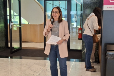 La consellera de Social del comú de Sant Julià de Lòria, Eva Ramos, donant la benvinguda als padrins i padrines a les Memolímpiades.