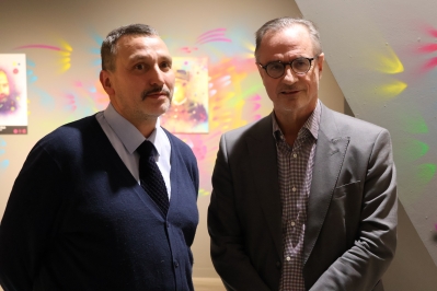 El retratista Christian Guémy, conegut artísticament com a C215, i l'ambaixador francès a Andorra, Nicolas Eybalin.