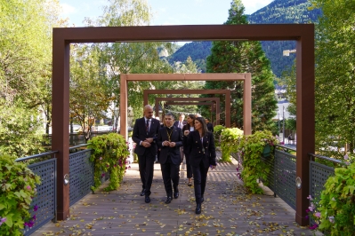 Un moment de la visita oficial a Encamp del copríncep episcopal, Josep-Lluís Serrano Pentinat.