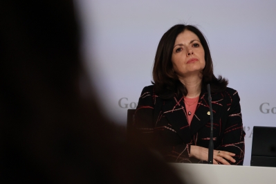 La ministra d’Afers Exteriors, Imma Tor, durant la roda de premsa sobre l’Entry-Exit System.