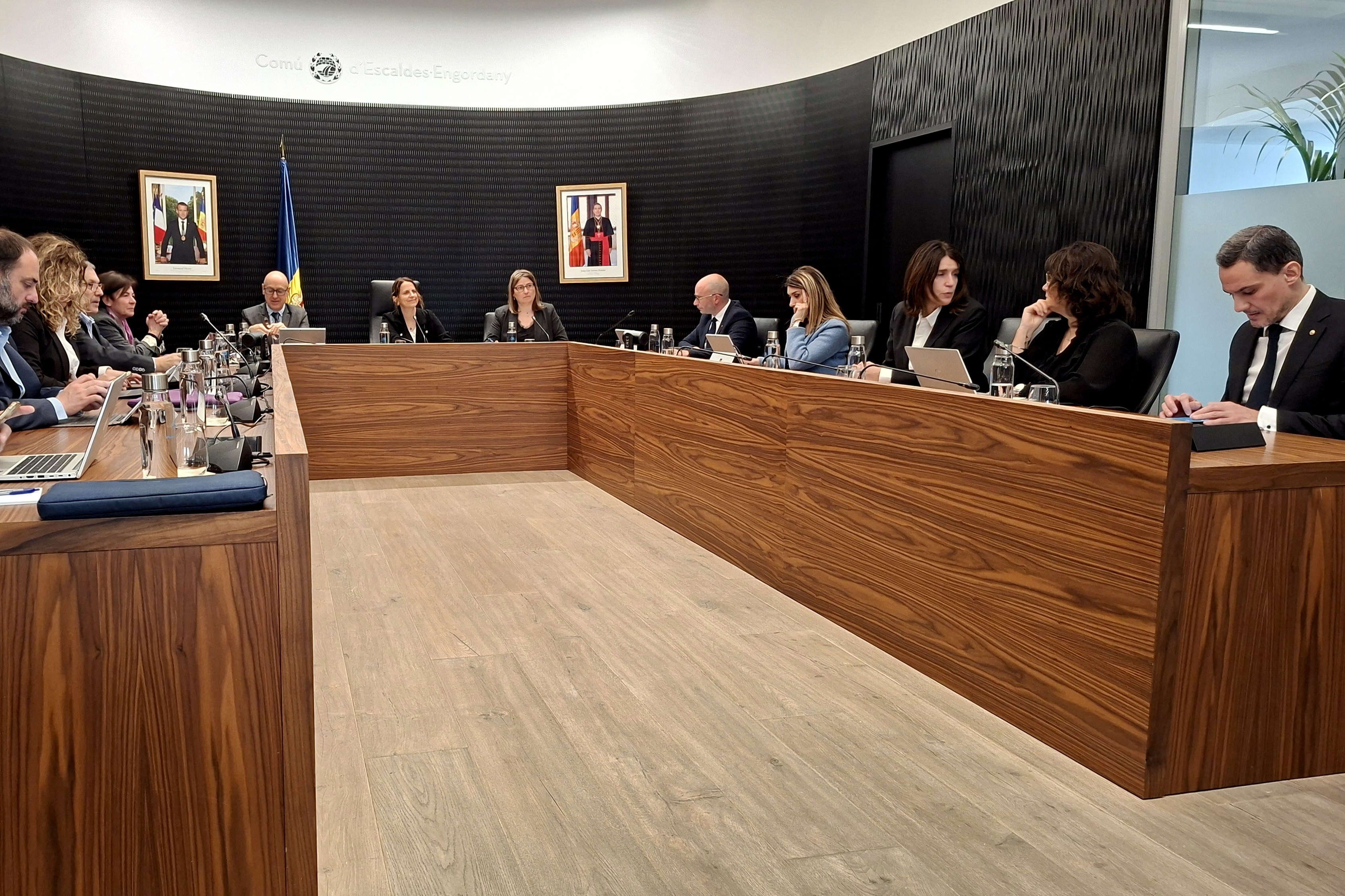 El cònsol menor i conseller de Finances, Compres i TIC, Quim Dolsa, amb la cònsol major d'Escaldes-Engordany, Rosa Gili, durant la sessió de consell de comú.
